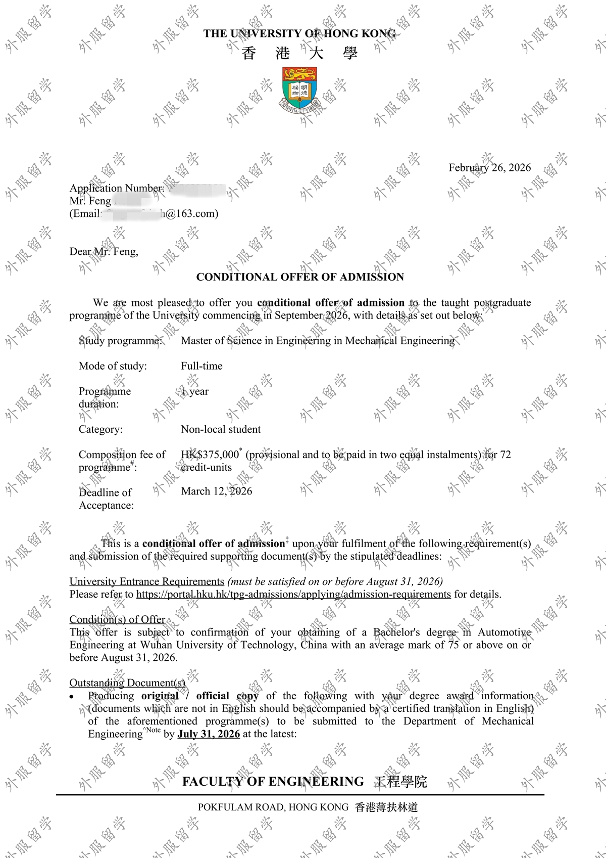中国香港大学机械工程专业硕士offer