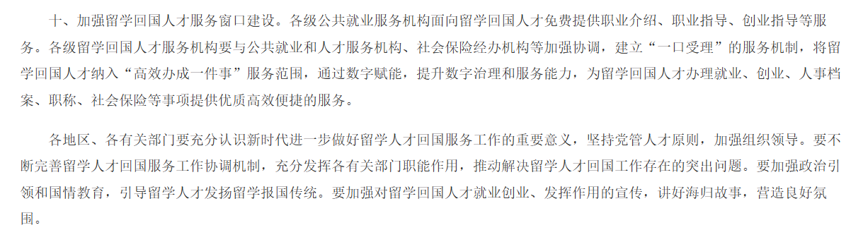 此前,十部门联合印发《关于进一步做好留学人才回国服务工作的意见》,贯彻“支持留学、鼓励回国、来去自由、发挥作用”留学工作方针,建立完善覆盖全体留学回国人才的服务体系,持续吸引留学人才回国工作、创业和为国服务。